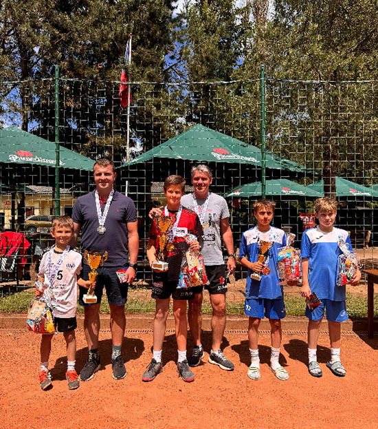 Začneme rovnou jedním úžasným překvapením v podobě devítiletého Honzíka Sýkory, který vybojoval na MČR mladších žáku v Karlových Varech 16. června nečekané stříbro v singlu v kategorii žáků do 12 let. Přehrát o hlavu větší soupeře se mu nepovedlo jen ve finále. Tím vyrovnal tituly vicemistra v singlu svého táty Jana Sýkory st.